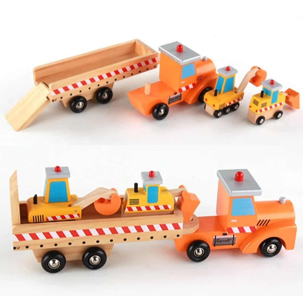 🚧 Camión Transportador con Vehículos de Construcción